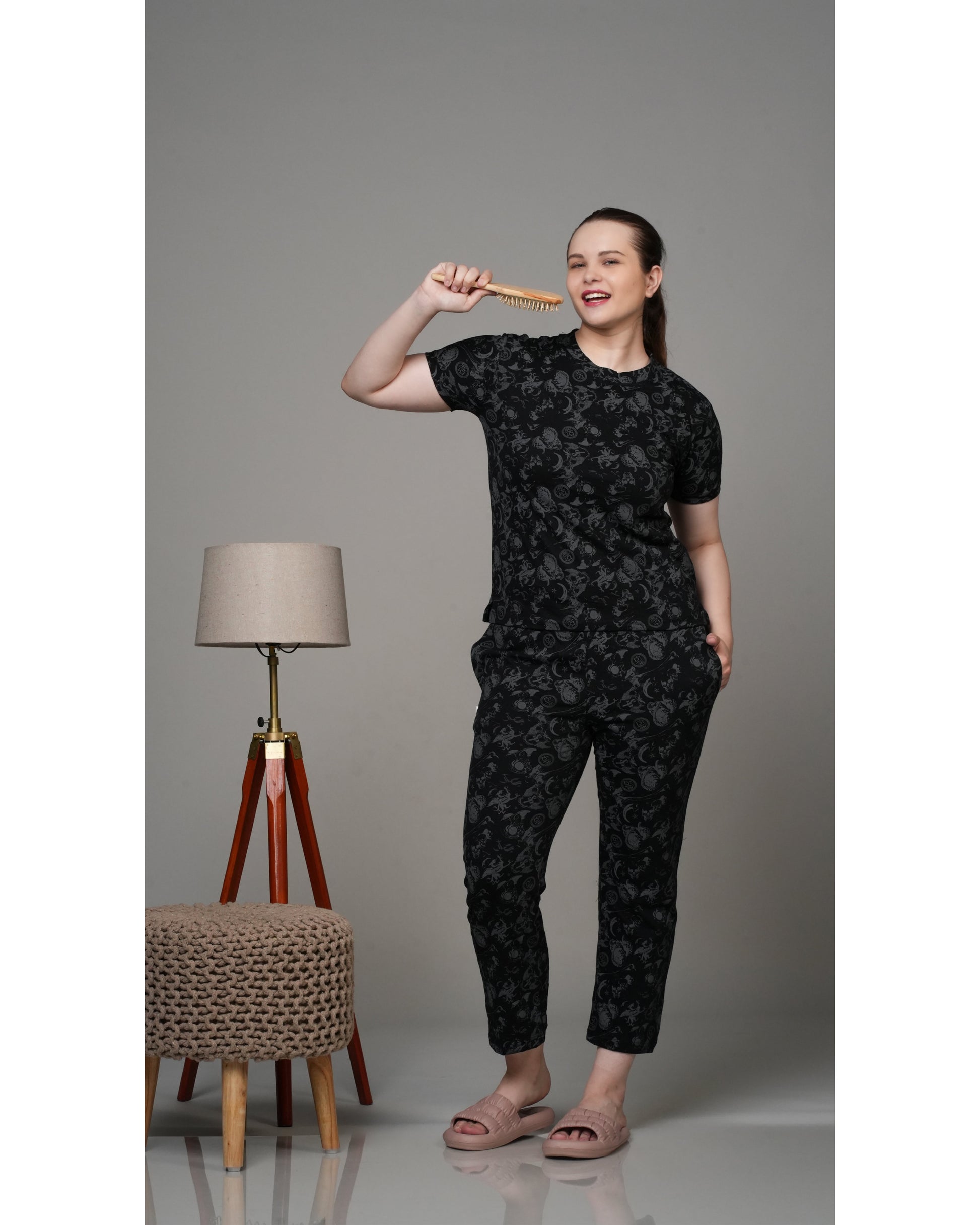 Black Grey Monochromatic Stretchable Co-Ordset