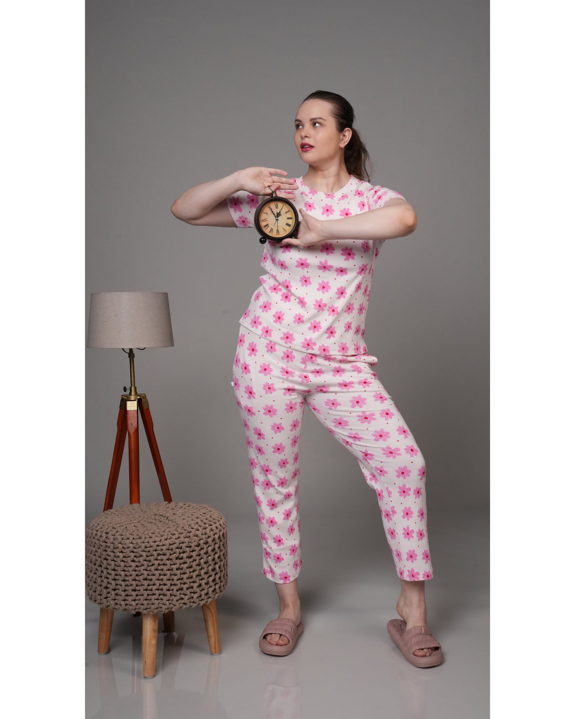 Pink Daisies On White Stretchable Co-Ordset